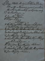 Pateikiamas rekvizuojamų iš plk. J. Komaro Raguvos, Vašuokėnų, Palėvenės ir Pšemislavo dvarų sukilėlių dažniausiai vartojamų maisto produktų sąrašas.